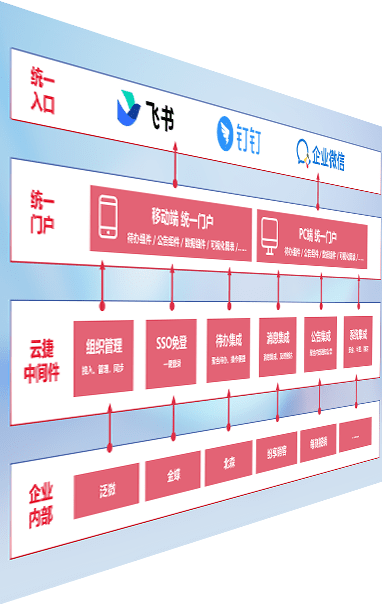 对协作平台提供支持服务,,,支持企业应用与协作平台对接,,包含组织同步、、、、消息集成、、待办集成等。。支持目前主流的协作平台:钉钉、、、企微和飞书。。。